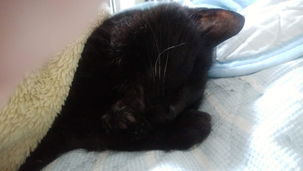 隣で可愛く寝ていたクロ。