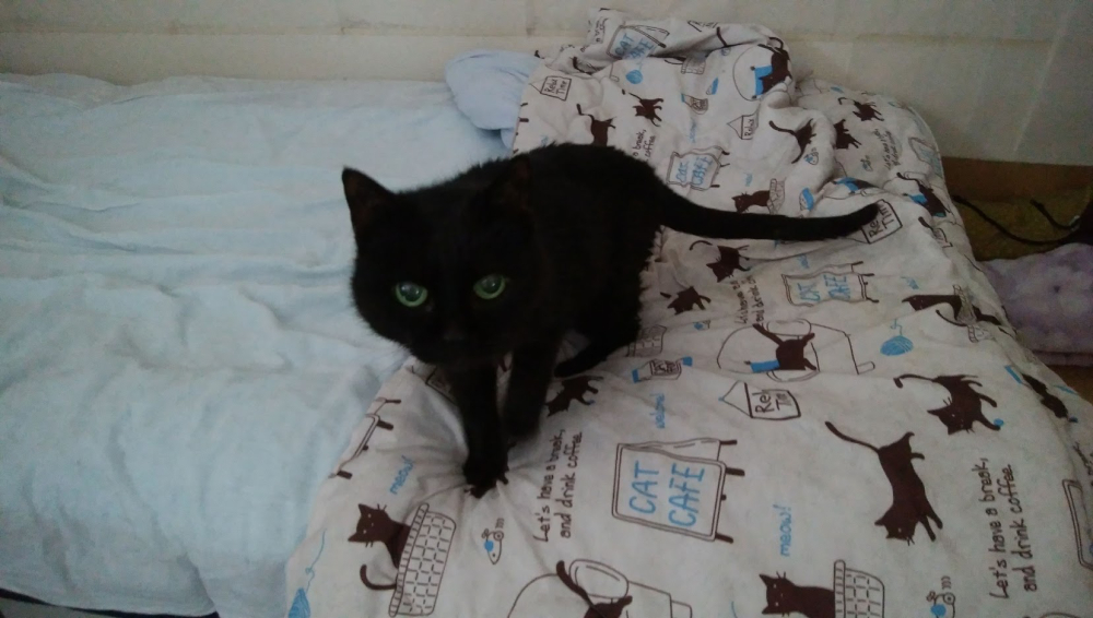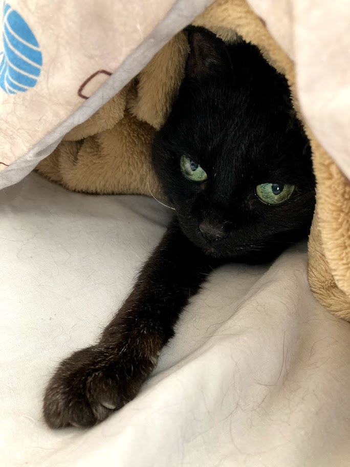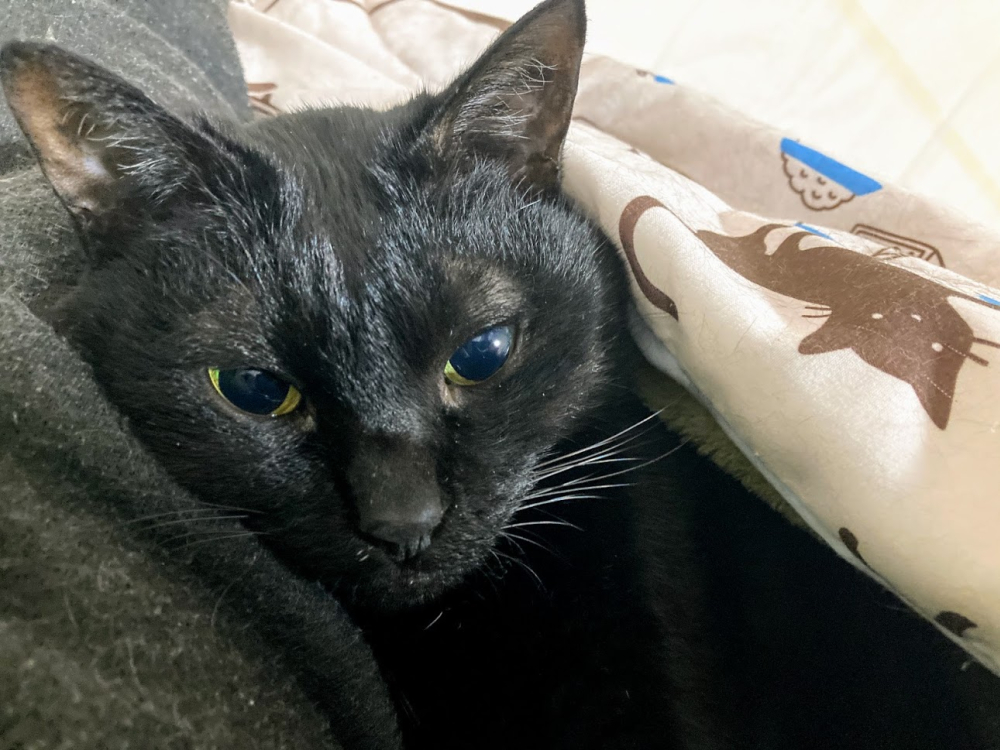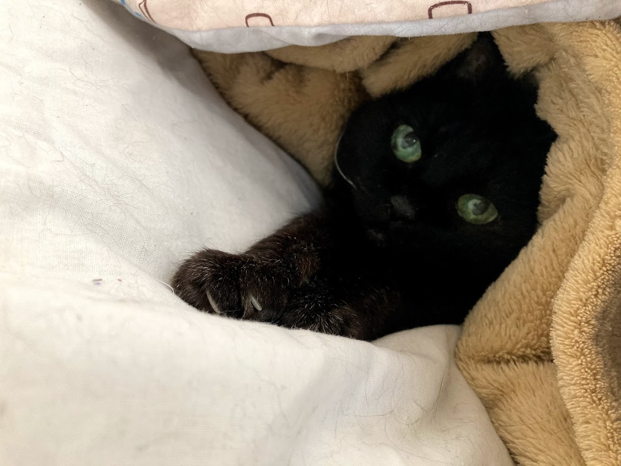 布団の中にいるクロ。
