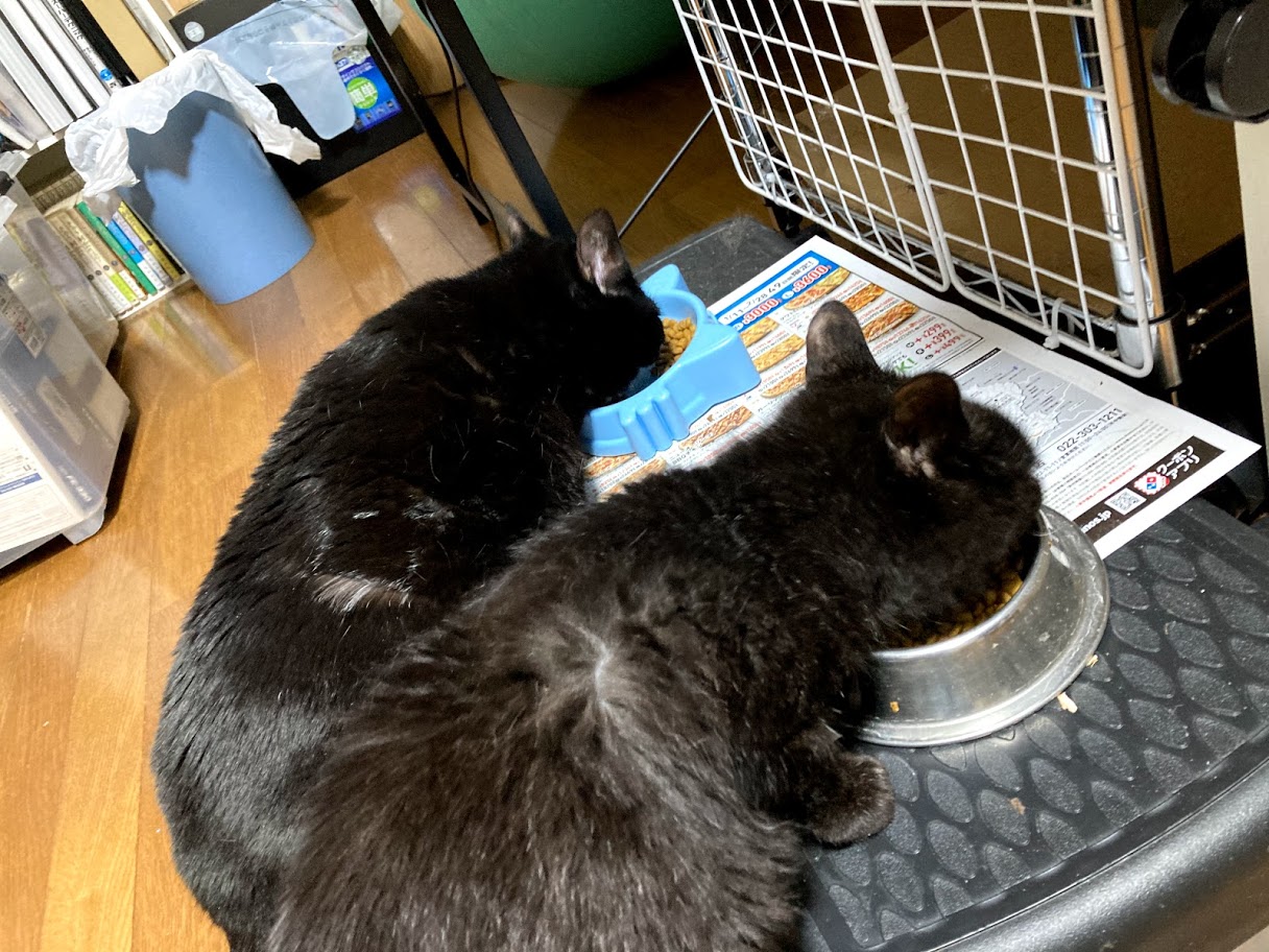 並んでご飯中。