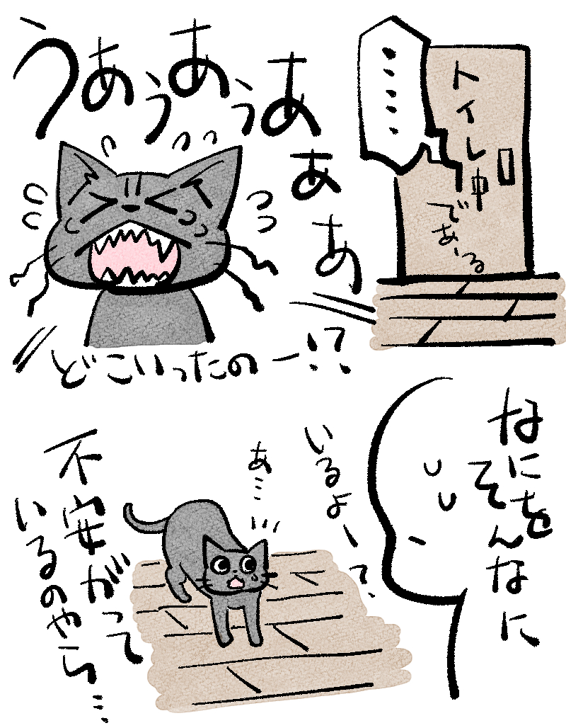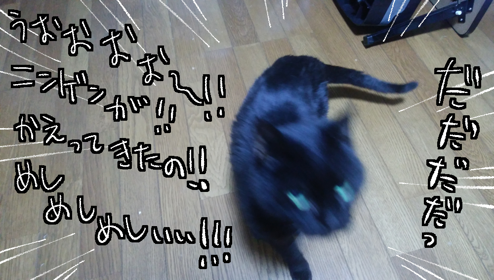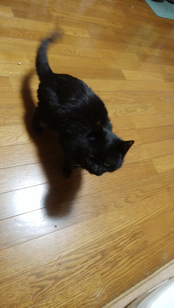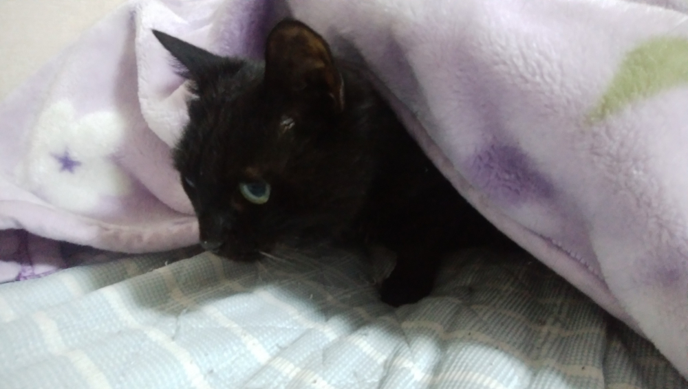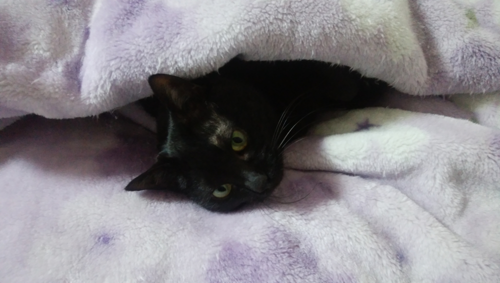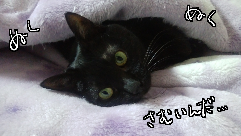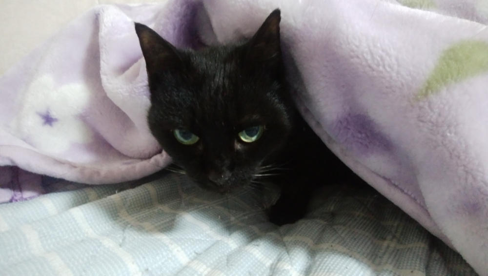 使用人が帰ってきた!!!と布団から出てくるクロ。