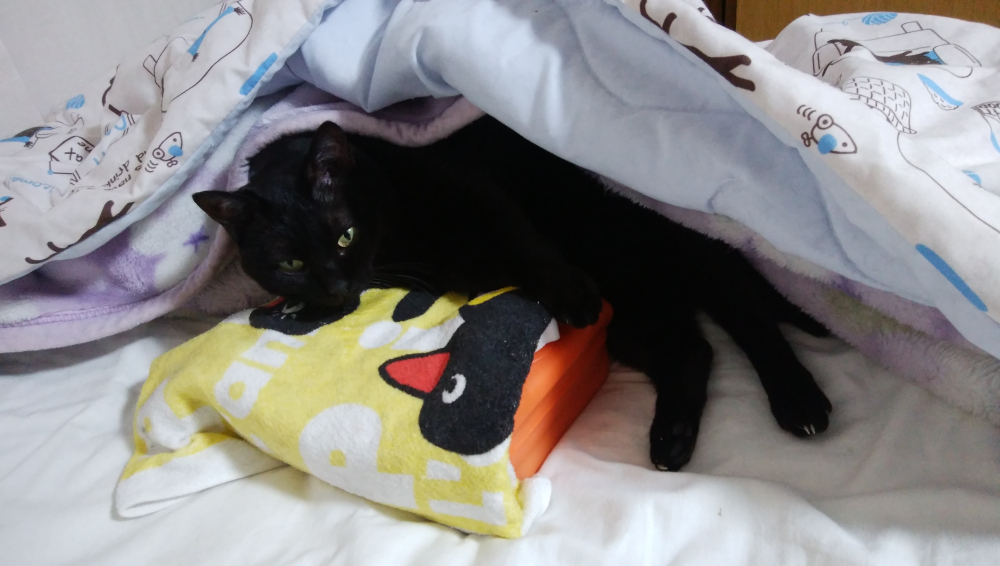 猫らはこれを気に入ったのか、布団に潜り込んでる事多くなりました。