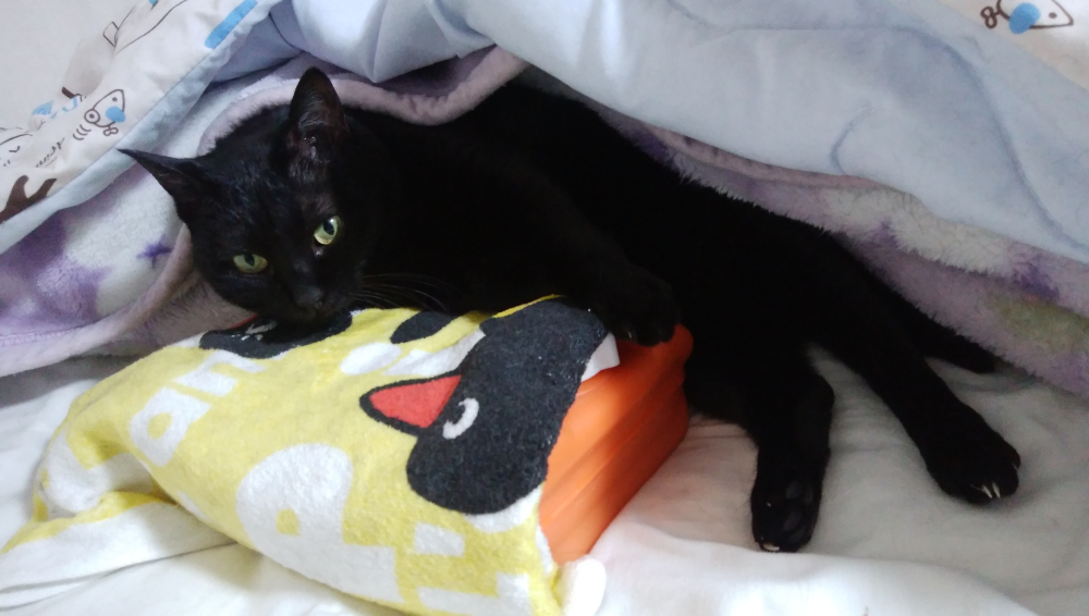 寒くなってきたので寝るときは湯たんぽを入れてる。