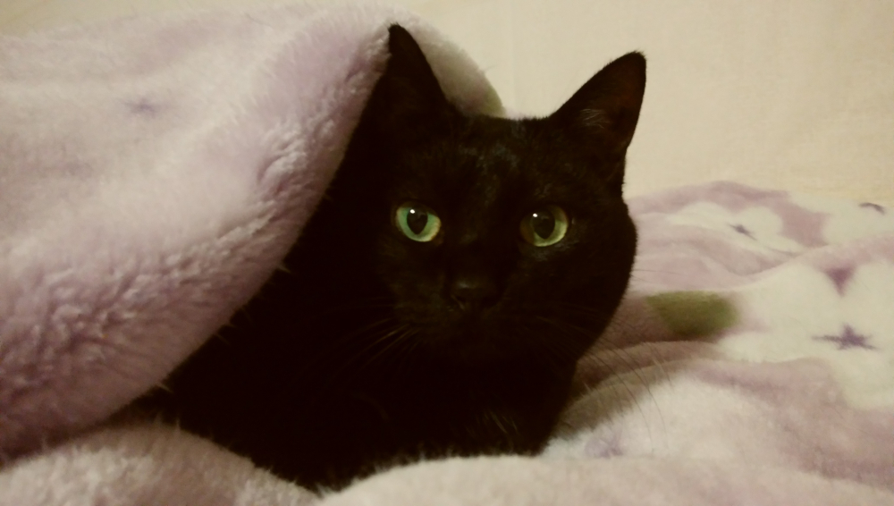 寒い日が続くので毛布に入るアぺ。